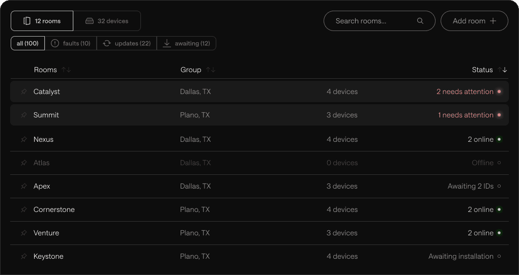 Manage rooms remotely from one secure platform.